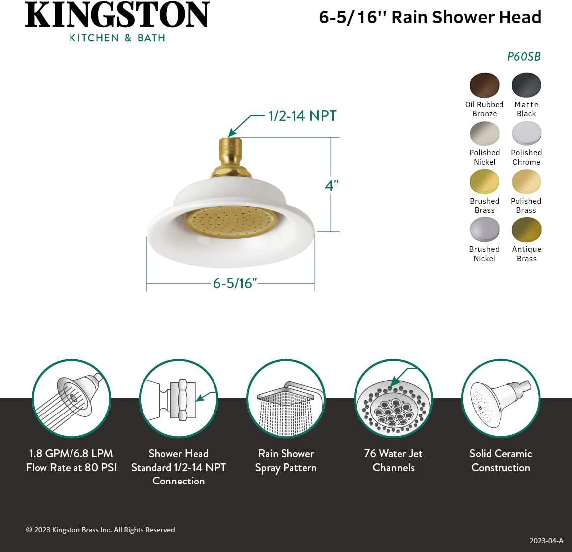 This beautiful ceramic shower head features a 6-1/4-Inch diameter face and 76 water jets for a relaxing downpour. The fine quality ceramic and brass material allow for long-lasting use and the finish is built to withstand corrosion and tarnishing.